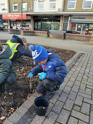 Children enjoying planting bulbs in Galleywood and Oaklands Park