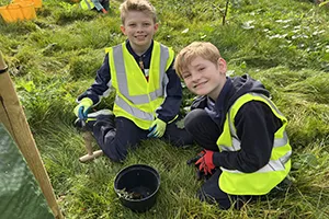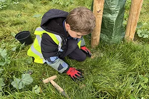 Pupils planted wildflower plugs to help create a colourful and nature-rich meadow