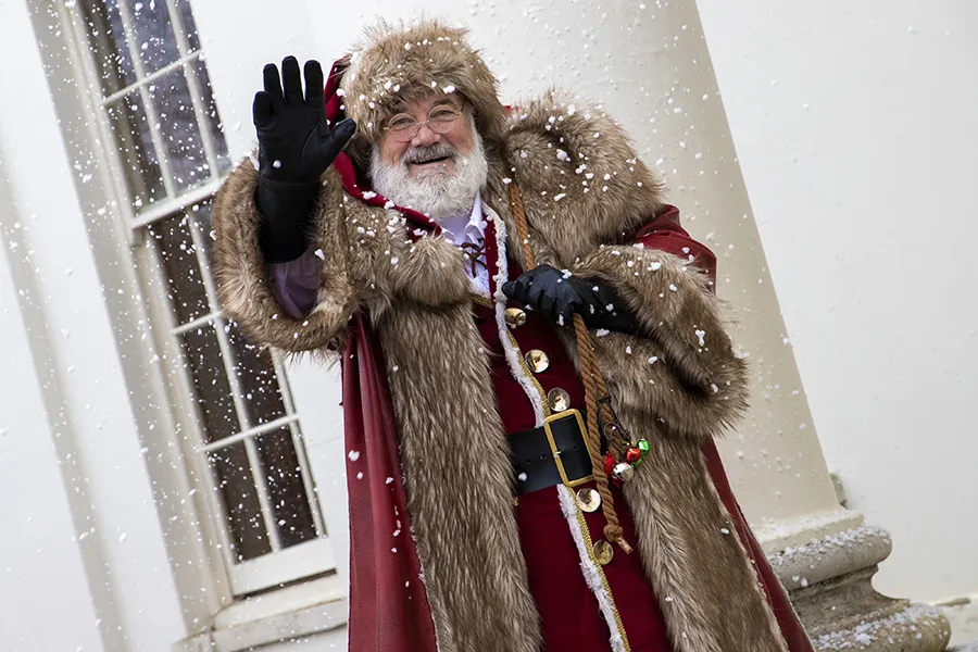 Father Christmas waves to the camera at Hylands’ Christmas Open Estate Day 2023.