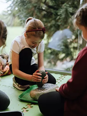 The workshop involved handling objects and exploring the museum’s prehistory displays.
