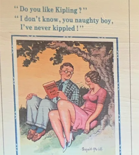 Donald Fraser Gould McGill was a very interesting character and one of 7 children. He was a naval architect and started designing pictures, which at the time, were deemed saucy if not rude, to go on the front of the postcards. He made 12000 designs, mostly in colour and was less than complimentary about large ladies and vicars.